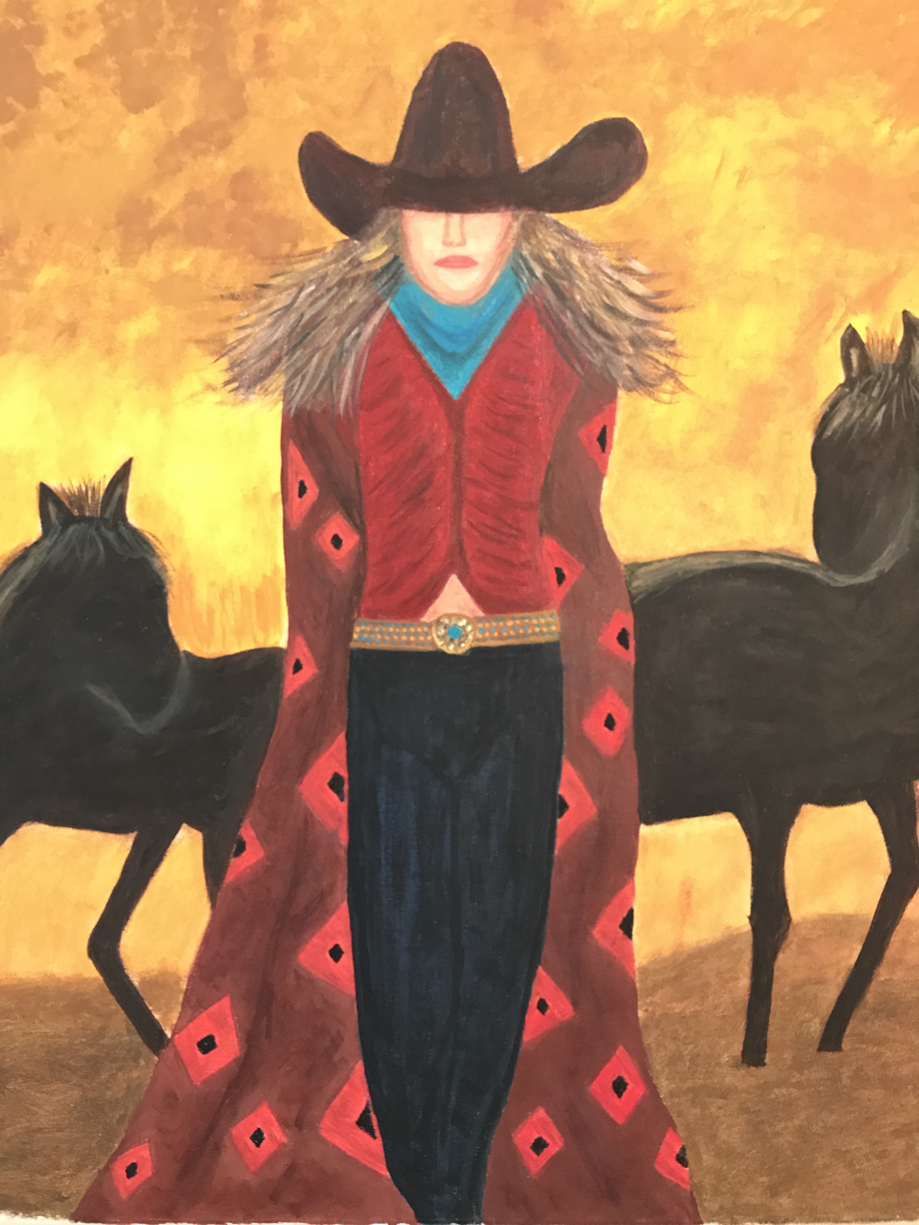 About six weeks ago, I took my first art class and just finished painting my first oil painting of a set of three or a triptych, called “The Blazing Trail Cowgirls.” More to come!